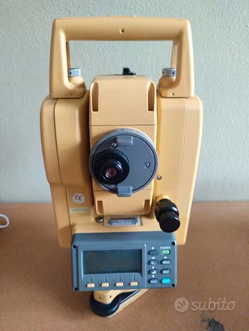 Per cambio strumentazione vendo stazione totale laser Topcon GPT 3005 in ottimo stato, con doppie batterie, caricabatterie, custodia rigida per il trasporto, copertura antipioggia, gancio a piombo, kit di attrezzi, istruzioni per l'uso.