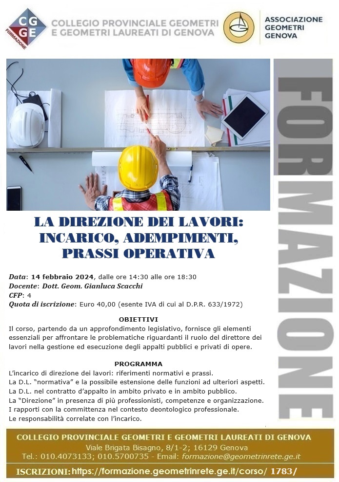 Il Collegio Geometri e G.L. di Genova organizza il corso: