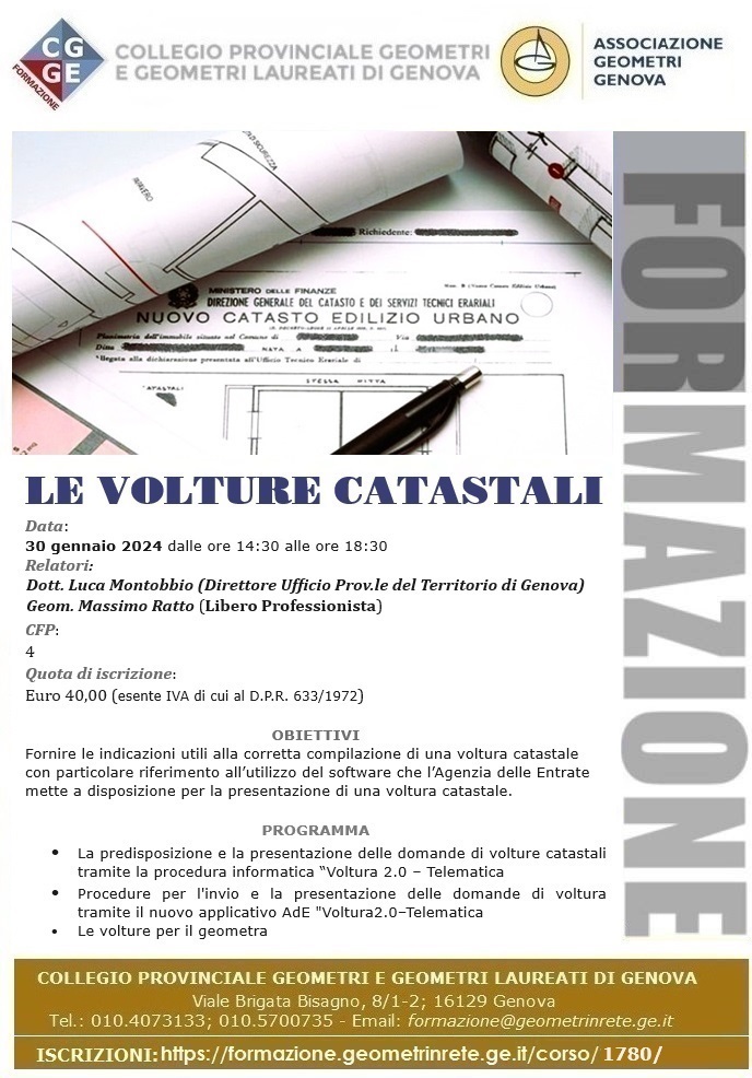 Il Collegio Geometri e G.L. di Genova organizza il corso: