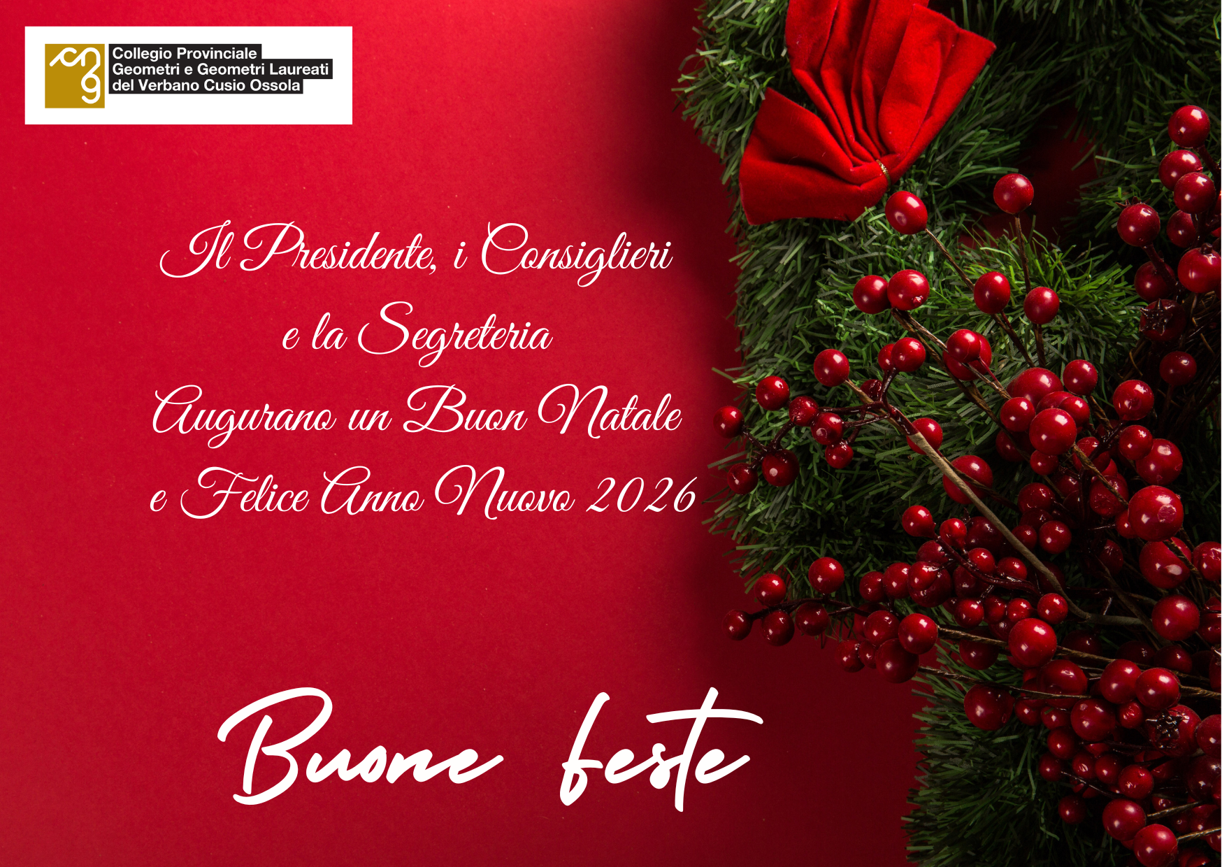 19 dicembre 2025 Si rende noto agli Iscritti che, in occasione delle Festività di fine anno, la Segreteria del Collegio resterà chiusa nelle giornate di mercoledì 24, mercoledì 31 dicembre 2025, venerdì 2 e lunedì 5 gennaio 2026.